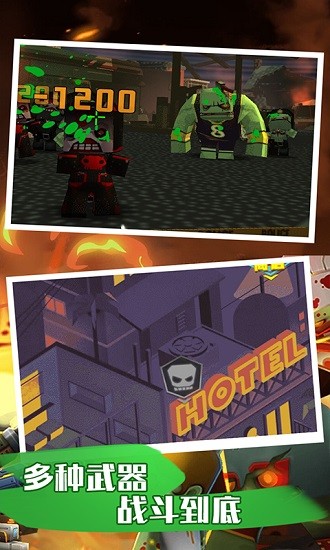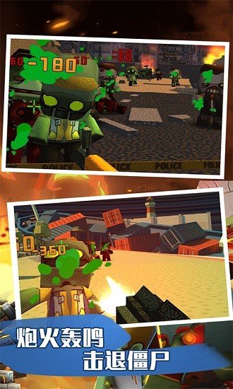 1、玩家在游戏中可以和这群僵尸展开激烈的枪战,尽你们最大的努力却消灭掉这些僵尸。
