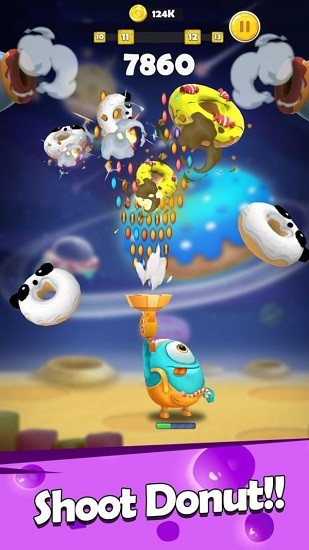 甜甜圈猎手,非常有意思的一款休闲射击小游戏,画面卡通可爱,操作简单,玩家上手容易。在游戏中,玩家将操控游戏人物,不断地射击消灭掉落的甜甜圈,同时还要注意随机掉落的炸弹,射击炸弹的话就会引起爆炸而导致游戏结束,通过消灭甜甜圈来获取金币,金币可用来升级你的装备。更多有趣的精彩内容快来下载体验吧!