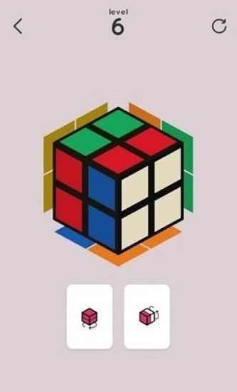 魔方残局游戏是一款休闲益智类的魔方解谜游戏,在游戏中玩家可以体验到和实际上手玩魔方的不同感受,玩法新颖并且有趣,更加适用于更多玩家。该游戏简化了魔方的游戏玩法,您只需选择魔方转动的顺序即可还原魔方,非常考验玩家的智商!点击下方的两个图标,完成魔方的相应旋转,恢复魔方后即可通关。