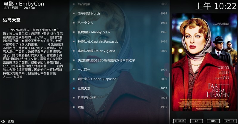 以上设置完成后就可以使用了,还可以安装Emby专有皮肤Embuary,使Kodi更像原生的Emby界面。