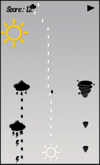 游戏开始人物为小子弹,吃到太阳炸弹后可消灭屏幕中所有敌人,敌人为黑暗的坏天气,其中包括下雨、闪电、风暴,敌人也可发射子弹,主角的子弹可以消灭敌人的子弹,消灭敌人后就可获得分数。