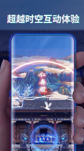 超越时空互动体验: 通过1:1复刻现实空间,同步线上线下的真实内容和MR内容,让用户跨越时空,可以随时体验文化的魅力.