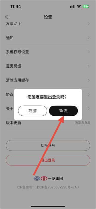 3、在设置页面中,找到并点击退出登录按钮,触发退出账号的确认弹窗。
