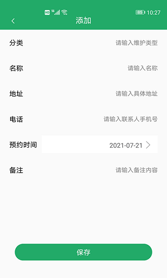 绿海园林记APP主要用于园林施工计划记录管理,可分类型记录,名称,地址,预约时间都可记录,轻松记录工作内容和时间,智能便捷,快速记录,方便管理,是园林工作者效率助手!