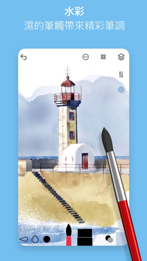 用铅笔素描,然后添加墨水,并用水彩完成作品。 随意添加和移除图层,或者可就某单一设计而“测试”各不相同的图层。 撤消、 重做 - - 随心所欲。