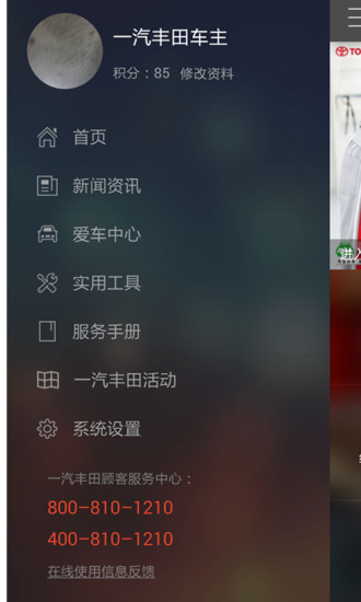 服务首页:及时的违章提醒、精准的油价数据、实时的天气信息和最新的一汽丰田资讯,让您的车生活从此精彩。