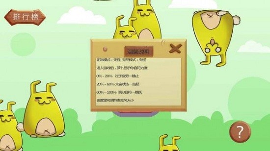 不要停下来兔子君,一直向着终点跳跃而去吧。游戏体积小,随时随地都能打开畅玩一下,非常休闲;为玩家准备了两种游戏模式,玩家可以根据自己的习惯爱好进行选择,还有实时排行榜展现最强大的跳跃大神,有信心的玩家欢迎下载不要停下来兔子君,一起看兔子拿下第一吧。