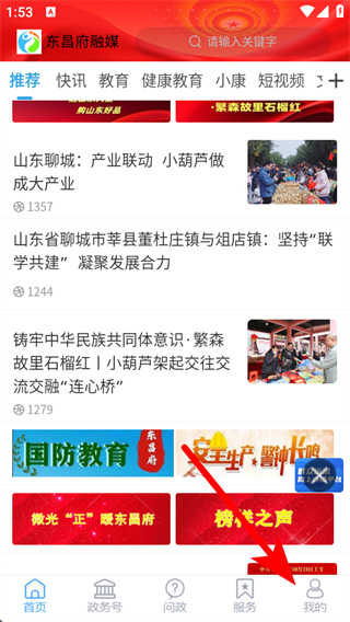 1、打开东昌府融媒APP首页,点击底部我的按钮,进入个人的页面。