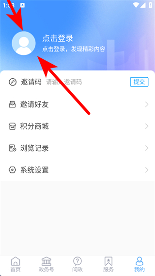 2、在个人的页面,点击点击登录的区域,进入用户登录的页面。