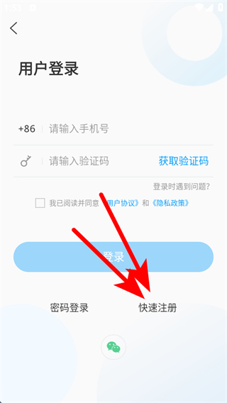 3、在用户登录的页面,点击快速注册,进入用户注册的页面。