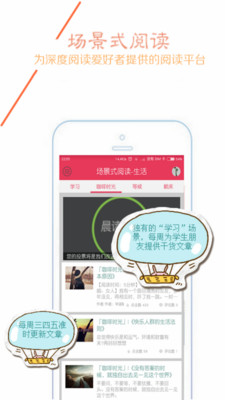 2.场景式阅读:针对深度阅读爱好者,开辟了全新的阅读场景。无论是在等地铁、路上、或是心情低落都能找到符合自己当下心情的文章,帮你快速找回信心,回到生活正轨。