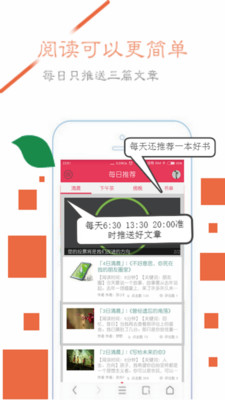 1.每日文章推荐:每天在清晨、下午茶、傍晚都会准时推送一篇高质量的文章,简单而不失精髓。