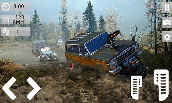 2、你可以使用多种驾驶模式,使用右/左按钮移动,或者使用方向盘转向来轻松移动吉普,又或者通过陀螺仪操控转向。