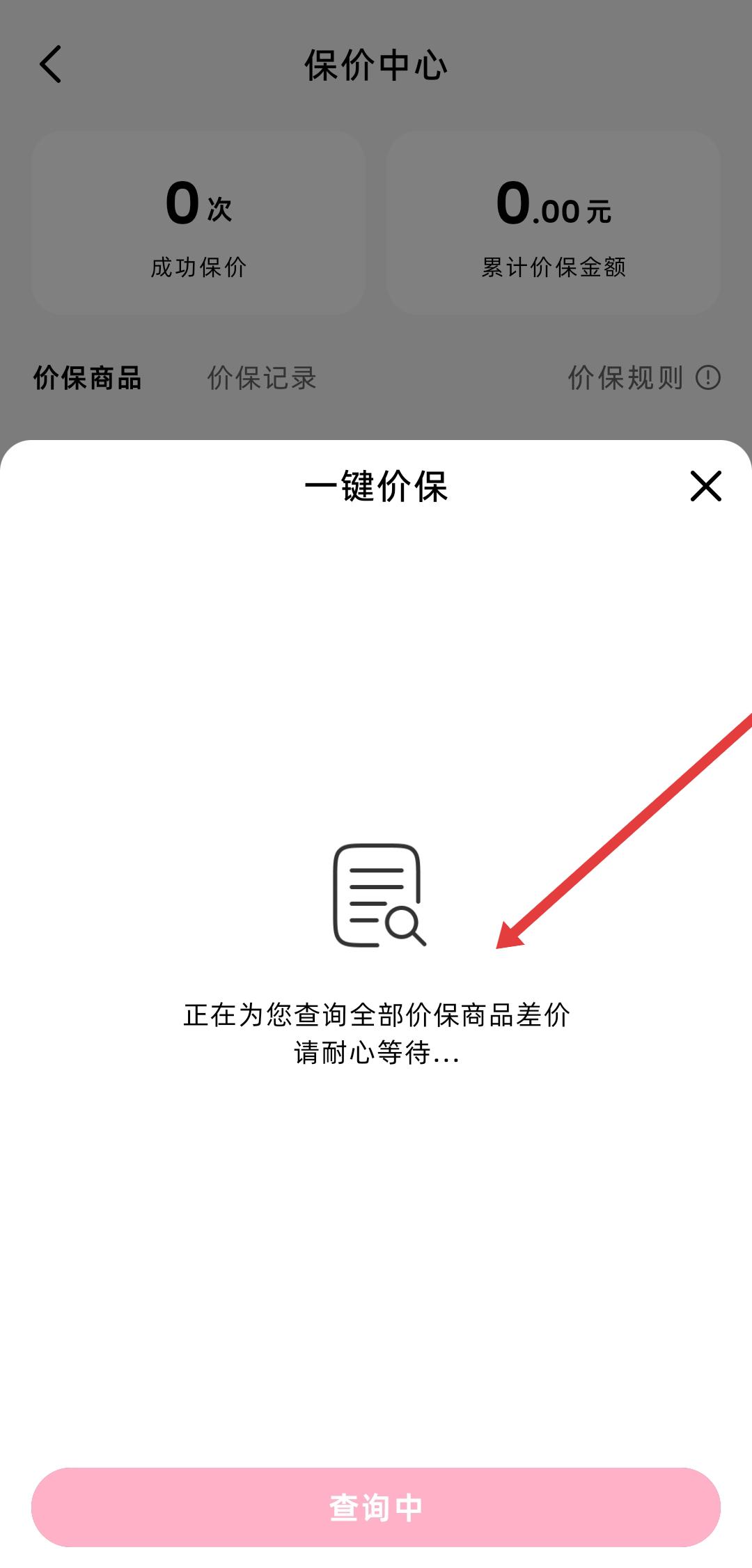 4、等待系统显示正在为您查询全部价保商品差价,完成后可查看可保价的商品并申请保价。
