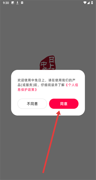 1、点击“个人信息保护政策”弹窗的“同意”,进入中免日上主界面。