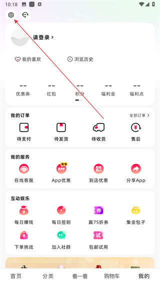 2、个人中心页面点击左上角的设置图标,进入设置页面。