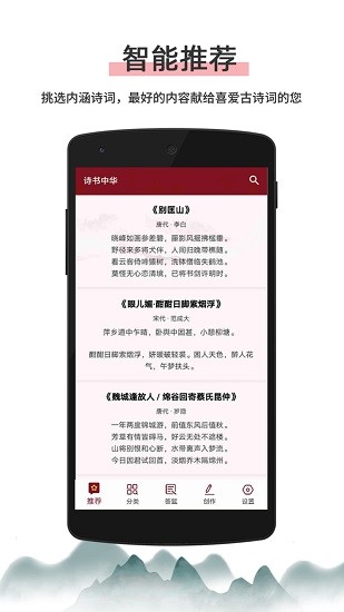 诗书中华无广告让你天天在这里阅读各种经典的古诗词,还可以慢慢进行品鉴,可以写出自己对古诗词的理解。线上拥有非常丰富的古诗词库,你可以通过分类或者搜索查找,每篇古诗词还有详细的解析可以查看哦,让你可以扩充自己的知识点。欢迎有需要的朋友下载使用!