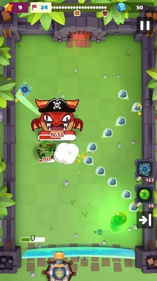 小岛海盗,非常有意思的一款益智闯关类的冒险小游戏,玩家在这款游戏中需保护自己的宝藏,面对四面八方而来的敌人,我们需不断的开炮来攻击敌人,成功击败一个敌人即可获得金币,金币可用于升级我们的武器装备,可以更好的去攻击更强大的敌人,成功击败所有敌人后即成功过关。更多有趣的精彩内容等你下载体验哟!