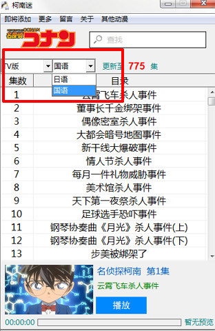 打开软件柯南迷,选择是看TV版还是剧场版,以及国语还是日语