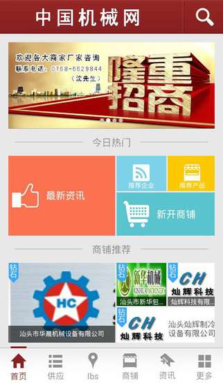 中国机械网APP客户端打造中国行业平台,提供专业海量的行业资讯,政策法规、展会信息、市场行情供求信息。并向全国招商,各大企业可以在客户端上发布供求信息,发布广告。通过整合上游供应商,中游生产厂家,下游经销商的行业平台,满足行业所需的同时,保持行业领先位置,逐步提高品牌的含金量,促进智能手机用户的下载安装与使用,是机械类企业产品营销和品牌推广的战略性平台。