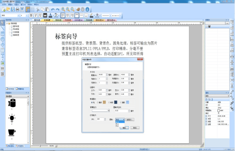 2、内置标签向导,多行多列标签格式设置,实现一行多张打印