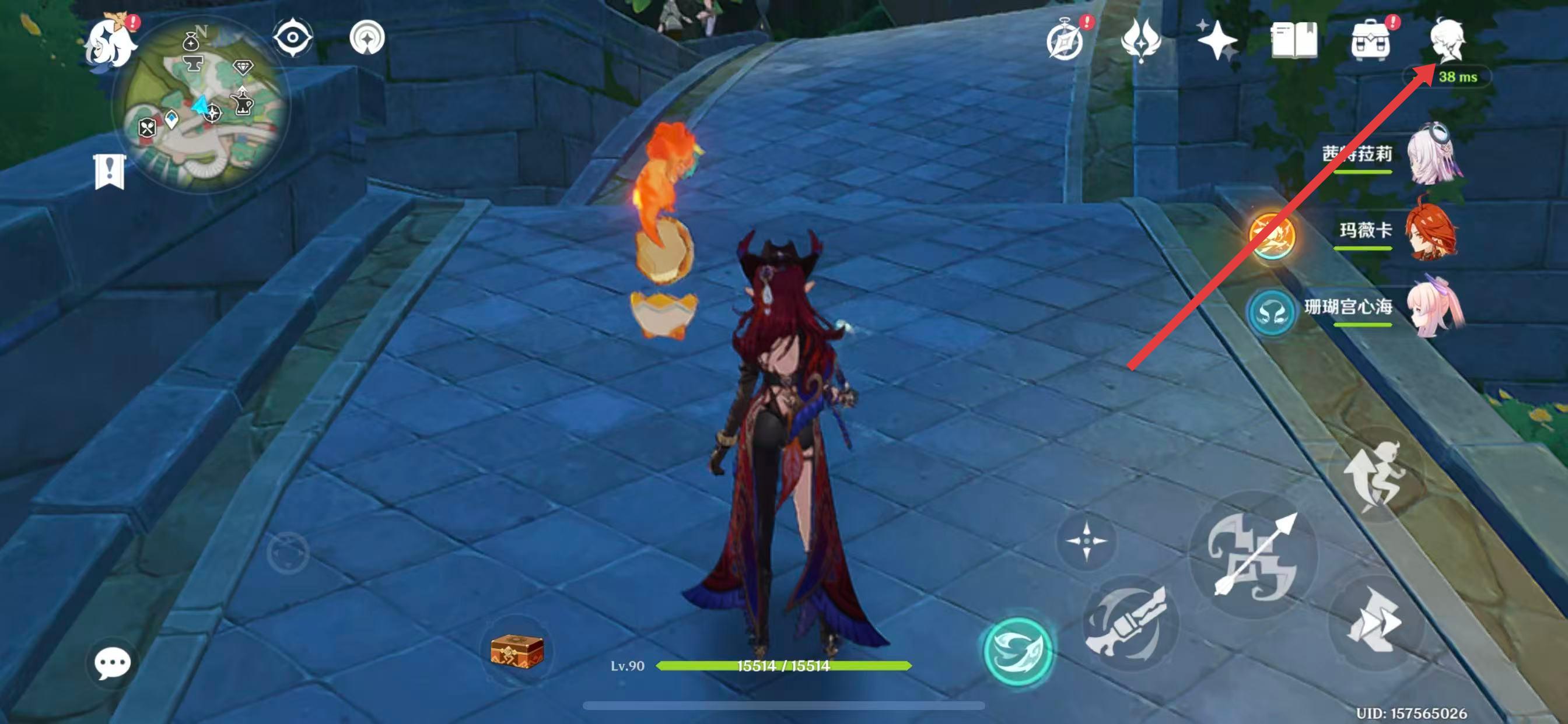1、进入原神游戏,点击界面右上方的角色头像图标,打开角色选择界面。