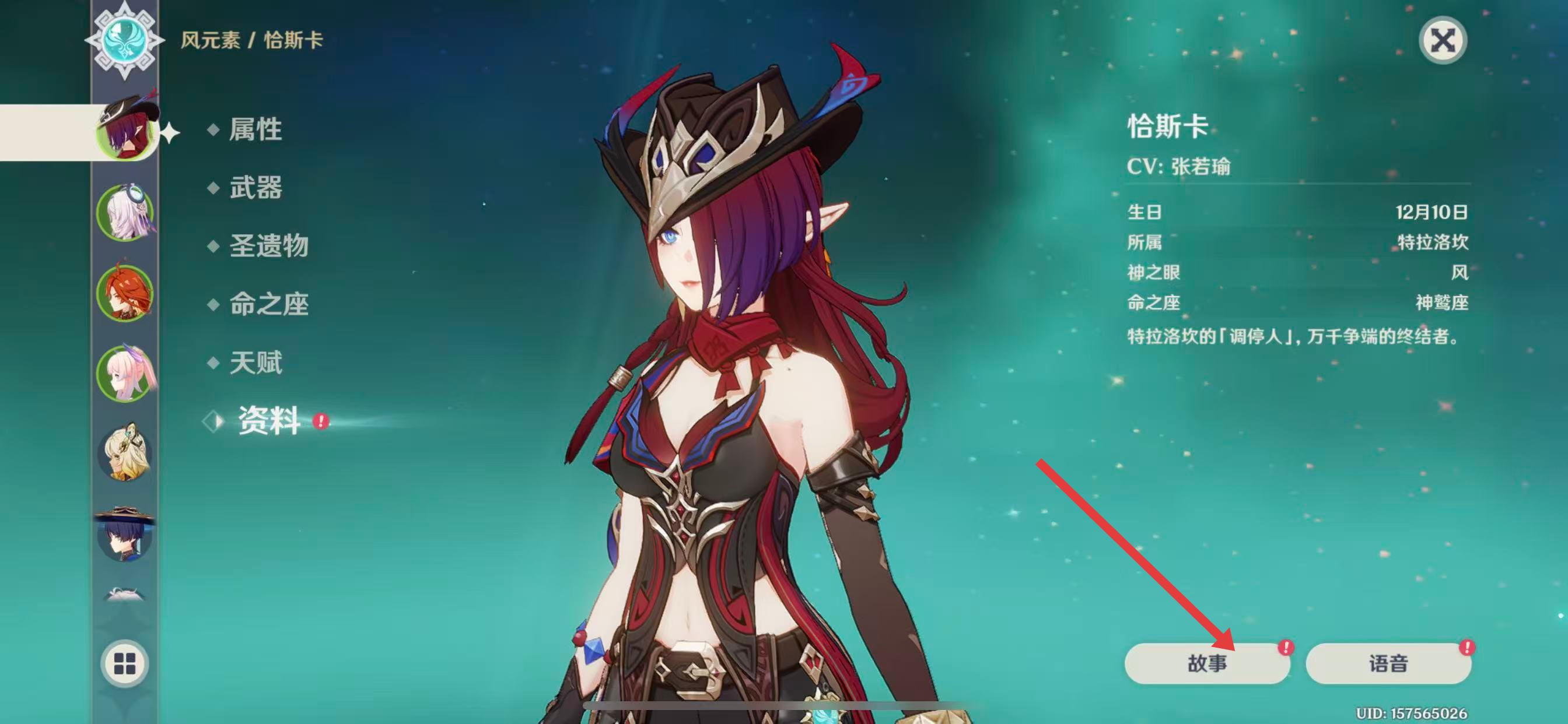 3、在角色资料界面右下方,点击故事按钮。