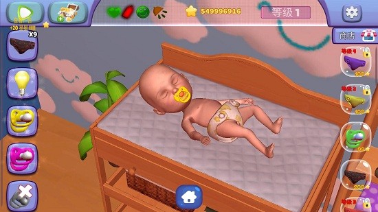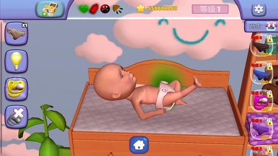 婴儿模拟器2游戏给大家修改成进入游戏获得大量的星星,这是模拟照顾婴儿的游戏,采用3D的设置,内容非常的真实,您需要给婴儿喂食,让小婴儿时刻处于健康幸福的状态,这样他才能健康成长,如果婴儿哭闹的话,那么可能是生病或者是饿了;