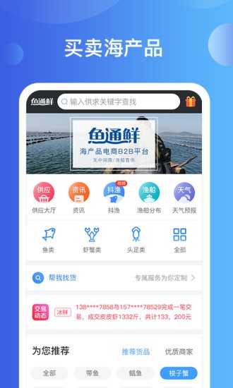 鱼通鲜app的海产品全部来自海上从业者的直接捕捞,产品全部是渔民自己发布,自己管理。