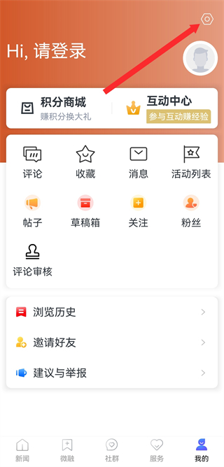 2、在个人界面中,点击右上角的设置图标,进入登录页面。