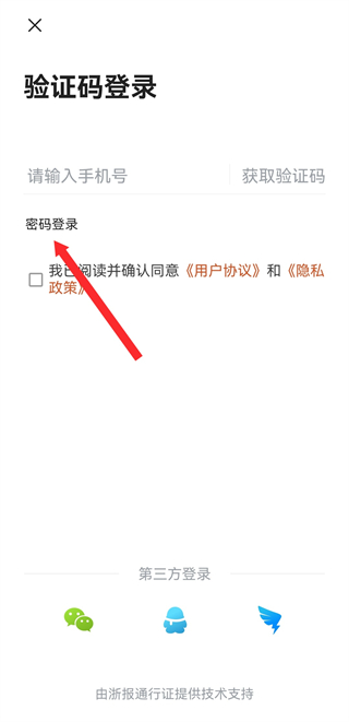 3、在登录页面,点击密码登录选项,进入密码登录的界面。