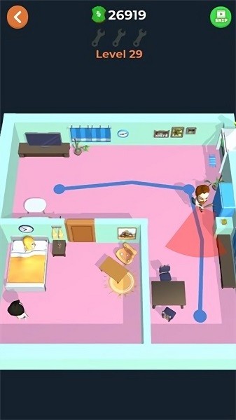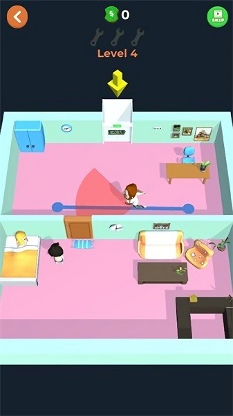 2、老王快逃策划好你的逃生路线,躲避对方的视线,游戏中还有多种道具可以使用;