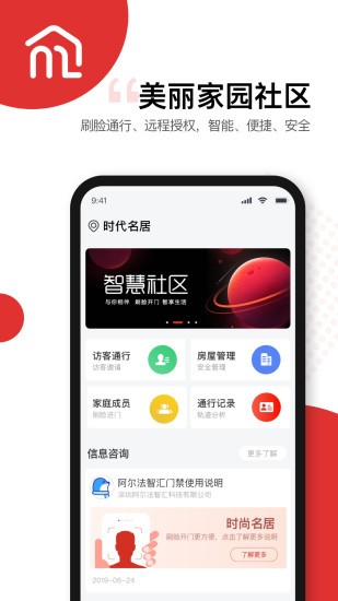 美丽家园app是一款供社区、园区、写字楼等场景使用的移动应用,具有人脸识别通行管理、访客租客通行管理、智慧物业管理、社区新零售等功能。通过这个应用你可以在线查看到家庭门禁的通行记录,让你能够随时随地对家庭门禁更加的了解。房东用户也可以直接在这个软件上添加租客信息,让你的房子能够更加轻松的得到管理,无需再给租客配门禁卡了。