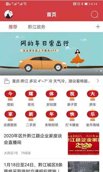 今媒体是黔江本地具有影响力的城市服务平台,为55万多的黔江人提供一站式生活服务,生活信息、消费指导、电子商务、房产、美食、旅游、亲子、拼车......尽在今媒体