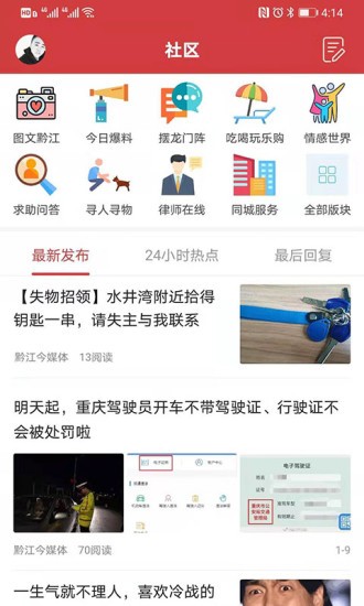 今媒体软件是黔江非常全面生活服务类型的手机app,在软件里给用户低功率大量的服务功能,找房、租房、同城跑腿、叫车、网购、生活缴费、查航班、违章查询、公交、交友、资讯等等等等,给用户带来最便捷的服务,一个软件就能够完美的解决生活中的各个方面问题。