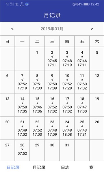 【打卡记录】记录打卡的时间。下班时间早上不用担心打卡,正确把握下班时间。