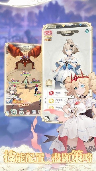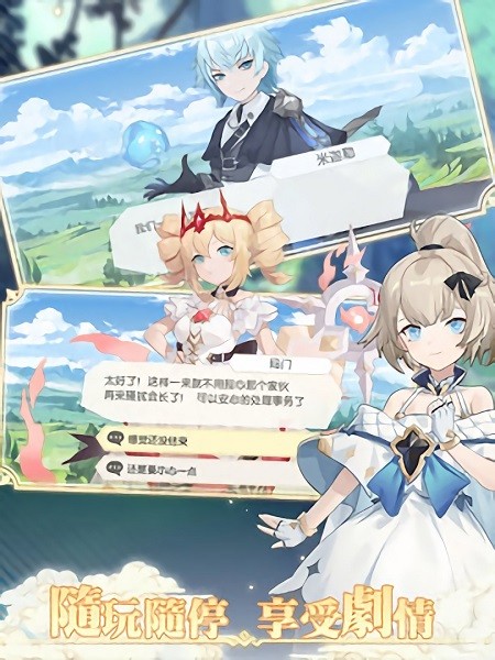 玩法轻松,玩家只需轻点屏幕即可完成简单的战斗布置,之后即可欣赏角色用华丽的技能与特效带来的视觉盛宴。通过一场场惊心动魄的故事感受关于友情羁绊、阴谋阳谋的奇幻物语。