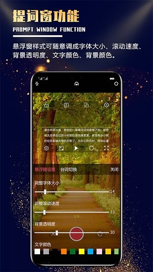 3、平台帮助你轻松的应对多个场景,避免出现尴尬的行为,字体的颜色、大小以及播放速度都可以设置,让你轻松选择最适合自己的格式。