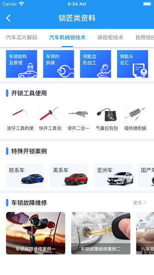 车艺通app是专门为有需要的用户打造的一款汽修改软件,在这里用户可以根据自己的需求在线进行搜索,还可以查看各种汽修知识,让用户对于汽车改装和锁匠机械类拥有更多的了解,还可以在线查看各种案例,软件非常的实用,有感兴趣的用户快来下载使用吧!