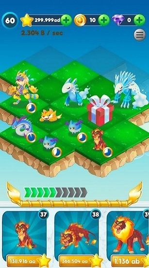 1、在不断的合成当中,让你的火龙快速升级,战斗力短时间内飙升。