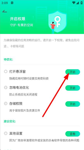3、找到打开悬浮窗,点击开启按钮,即可启用悬浮窗功能。