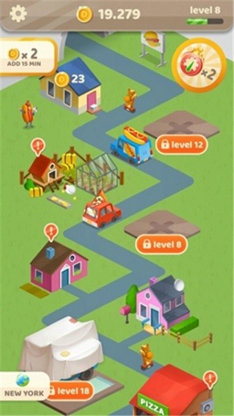 c、简单的卡通像素风格,轻松有趣的商业冒险,不断努力获取更多材料来扩展您的美食店。
