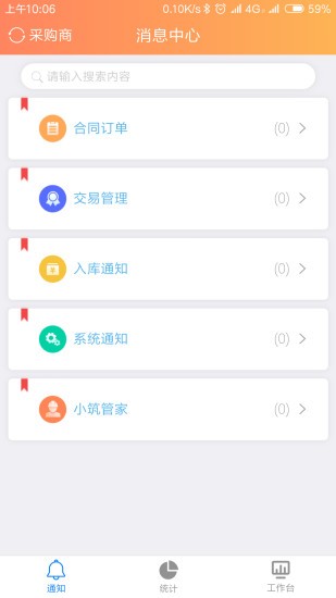 可查看审批消息、合同消息、订单消息、系统消息、小筑客服等更新消息,实时跟进业务状态,并可依据个人情况设置消息推送类型及推送时间。