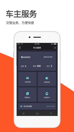 推送车辆新增交通违法告知、违法提醒年检、保险到期提醒驾驶人交通违法记分分值、记分清零时间、换证时间等信息的推送和查询。