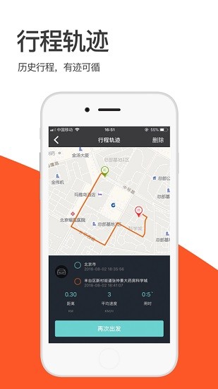 可以随时查询以往的行车路线,行程时间、距离及速度。