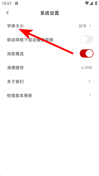 3、在系统设置界面,点击字体大小选项,进入字体大小设置页面。
