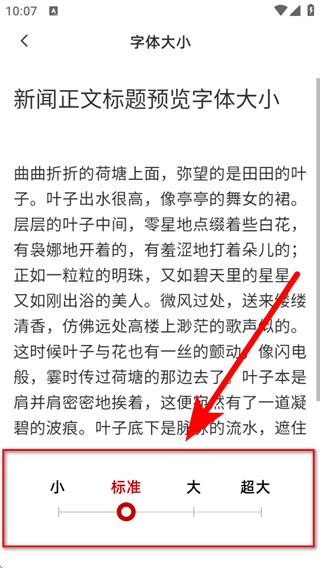 4、在字体大小设置页面,可选择字体大小,根据需求选择后即可完成设置。