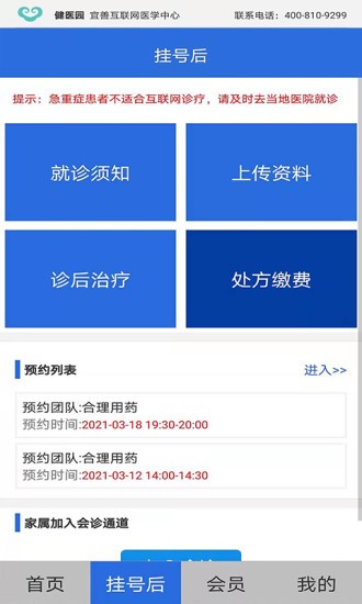 诊断预约:用户可以选择诊断预约,按照提示操作即可快速预约;