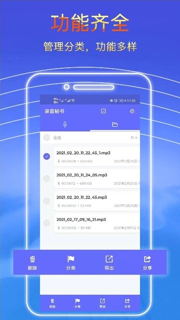 4.录音分类管理,方便快捷整理;导出分享免费