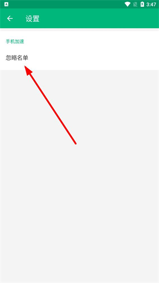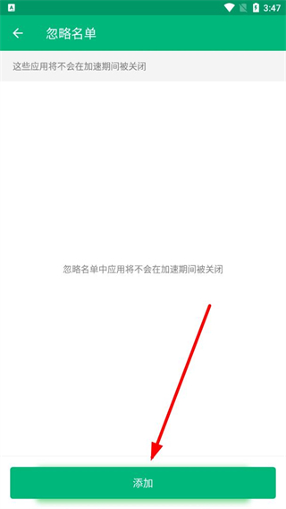 4、在忽略名单界面,点击添加按钮,即可添加应用到忽略名单。